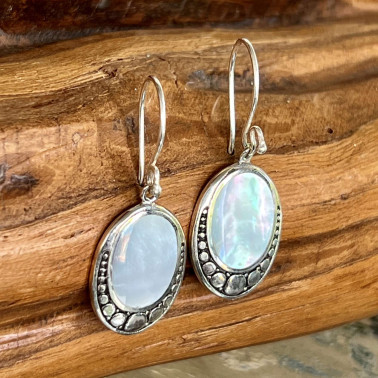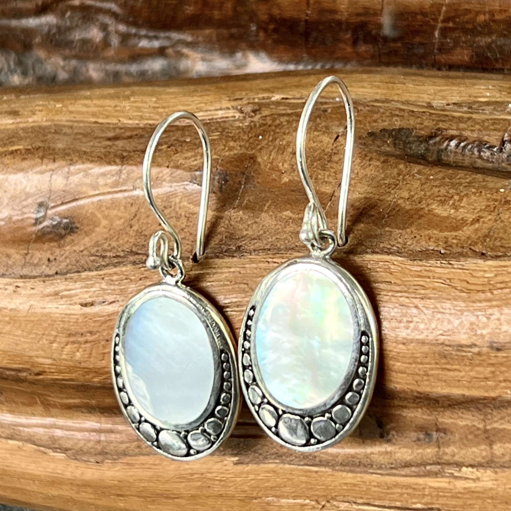 Unique and beautiful 925 Bali Silver Filigree Earrings with MOP.