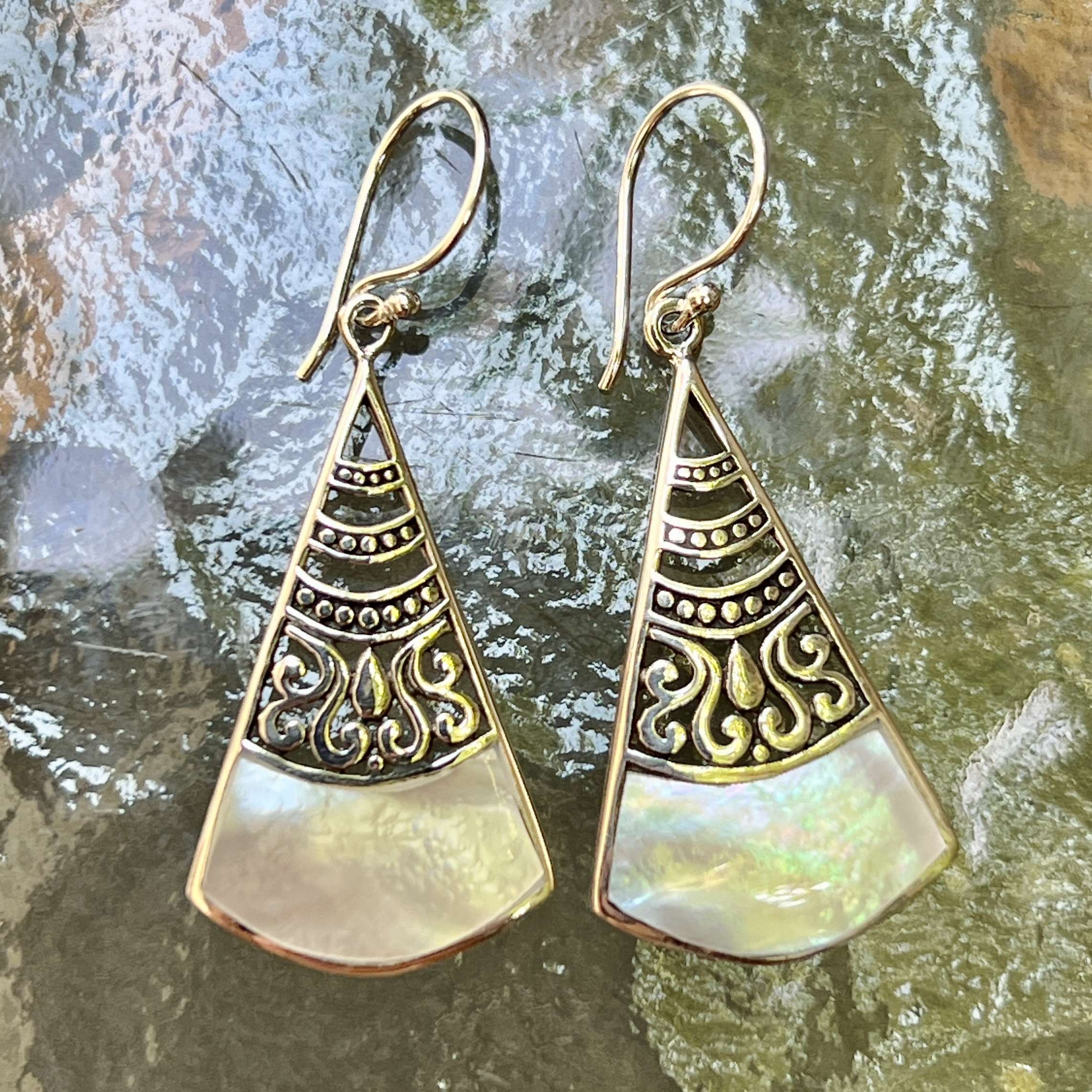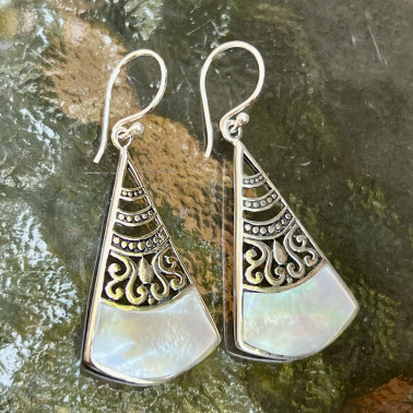 Unique Handmade 925 Bali Sterling Silver Earrings With MOP.