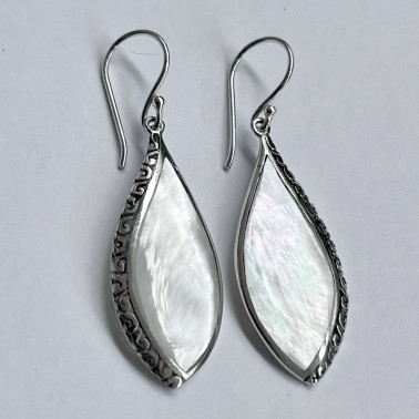 Unique Handmade 925 Bali Sterling Silver Earrings With MOP.