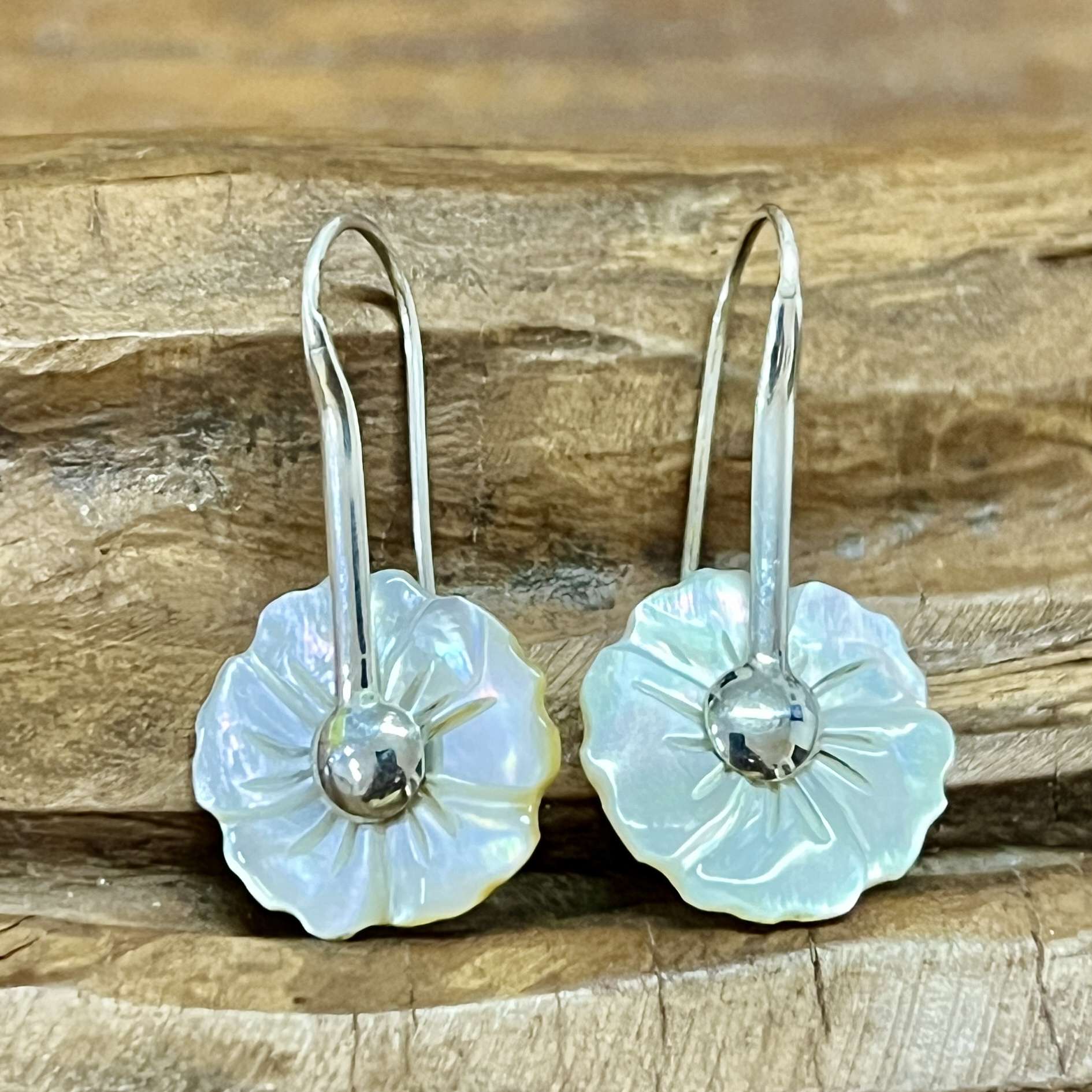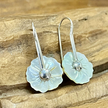 Unique Handmade 925 Bali Flower Sterling Silver Earrings With Mother Of Pearl.