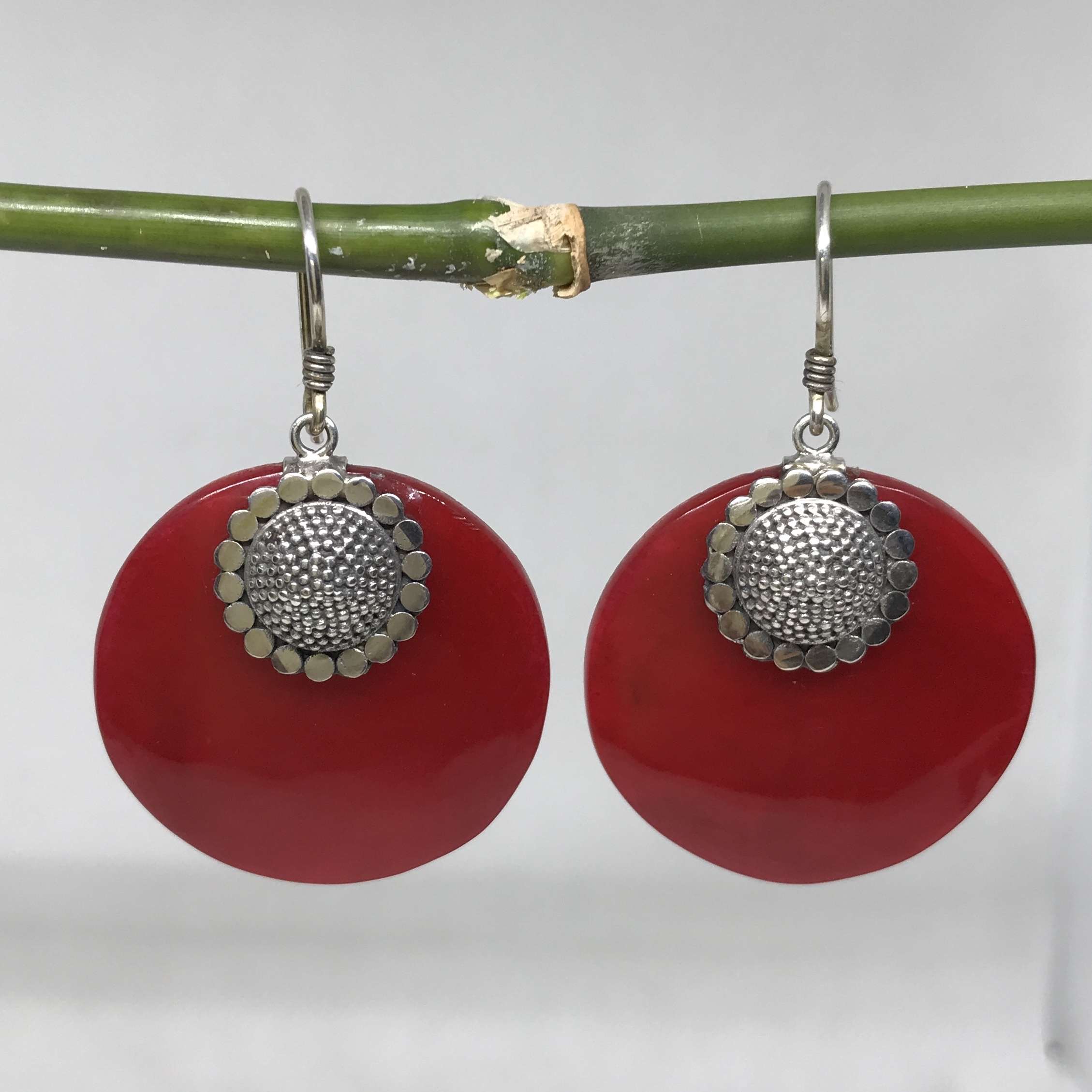 Beautiful Balinese Hand Carving 925 Silver Earrings with Coral