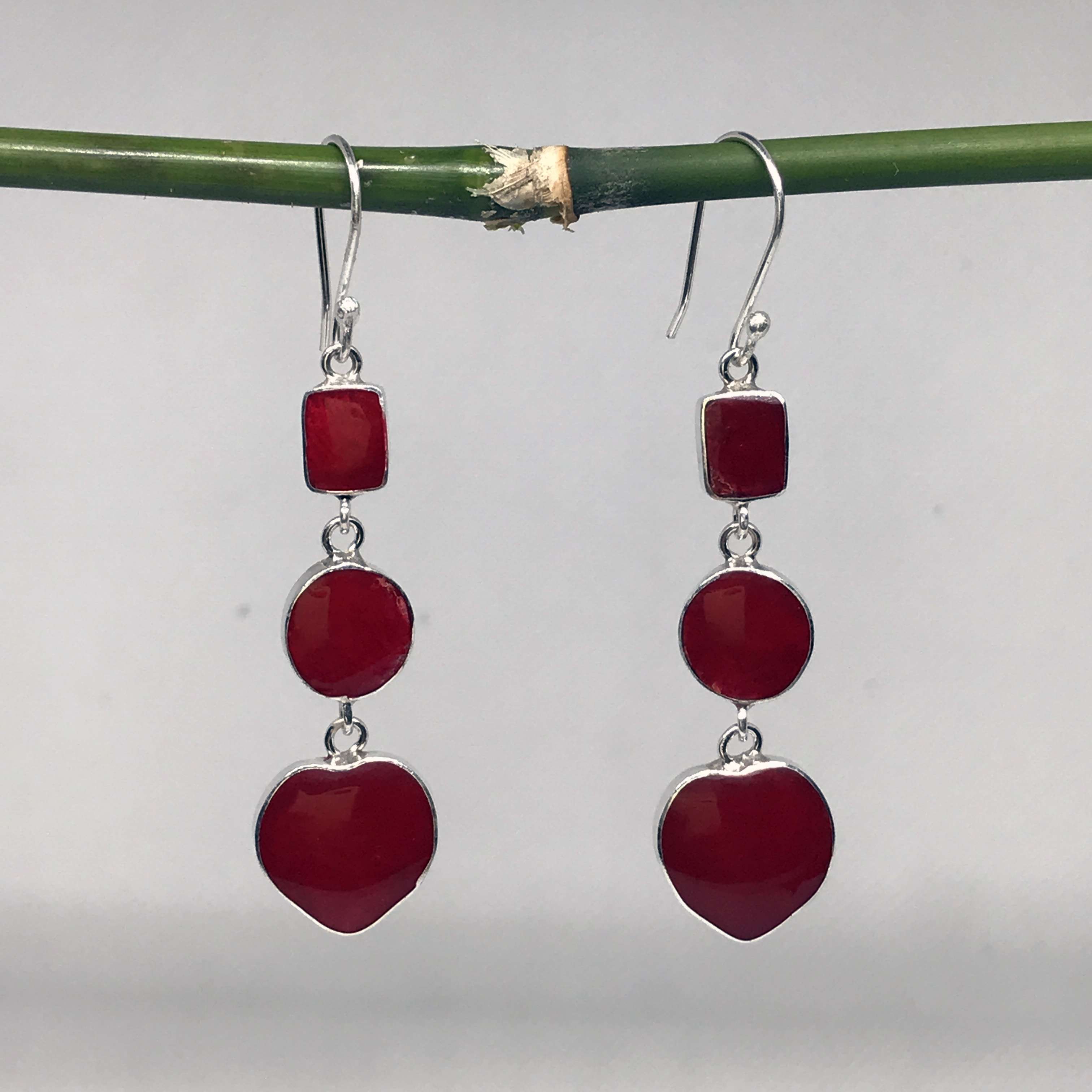 Beautiful Balinese Hand Carving 925 Silver Earrings with Coral