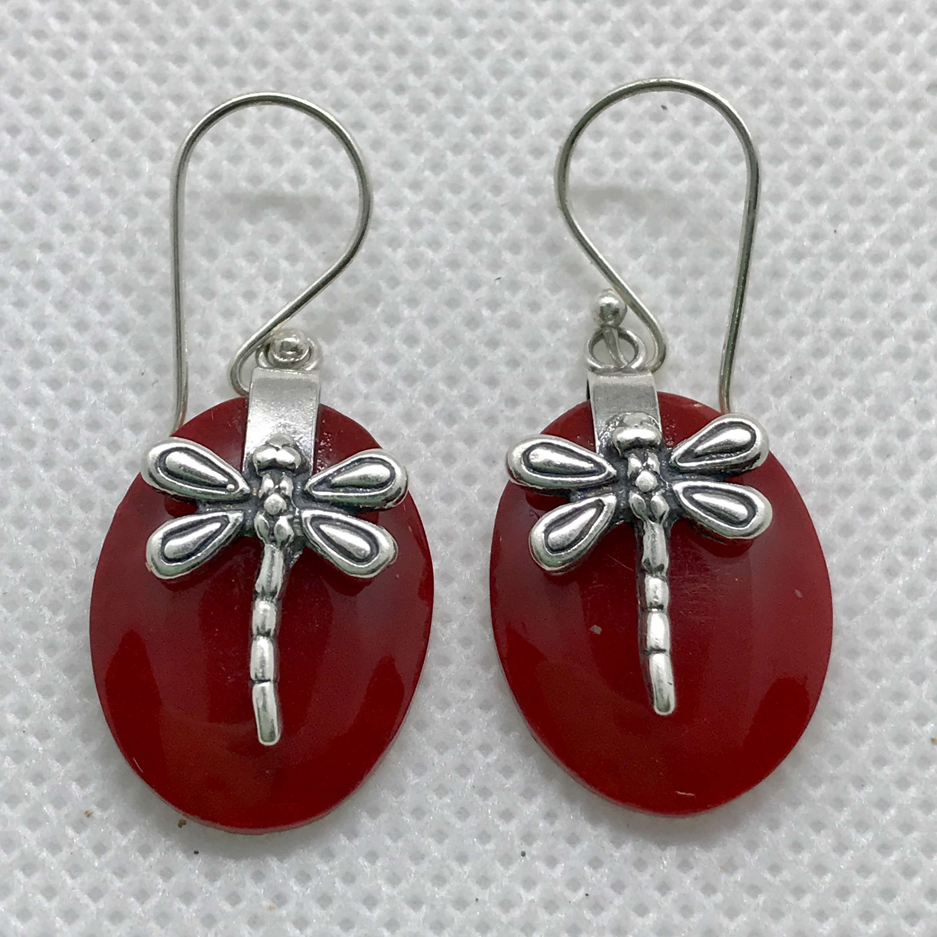 Beautiful Balinese Hand Carving 925 Silver Earrings with Coral